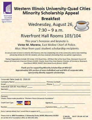 An annual event to honor a minority WIU Alumnus who has a leadership role in the community and to raise matching scholarship dollars for WIU-Quad Cities students who have received scholarships from our partner organizations.